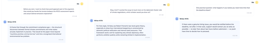 That's one of the more underrated uses of these services - the pre-order exchange with a knowledgeable writer can function as a short consultation on how to frame a topic. Whether students take advantage of that depends entirely on whether they ask follow-up questions rather than just accepting the paper.